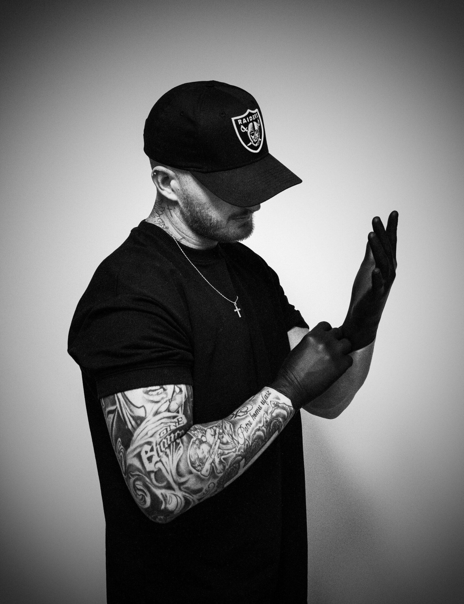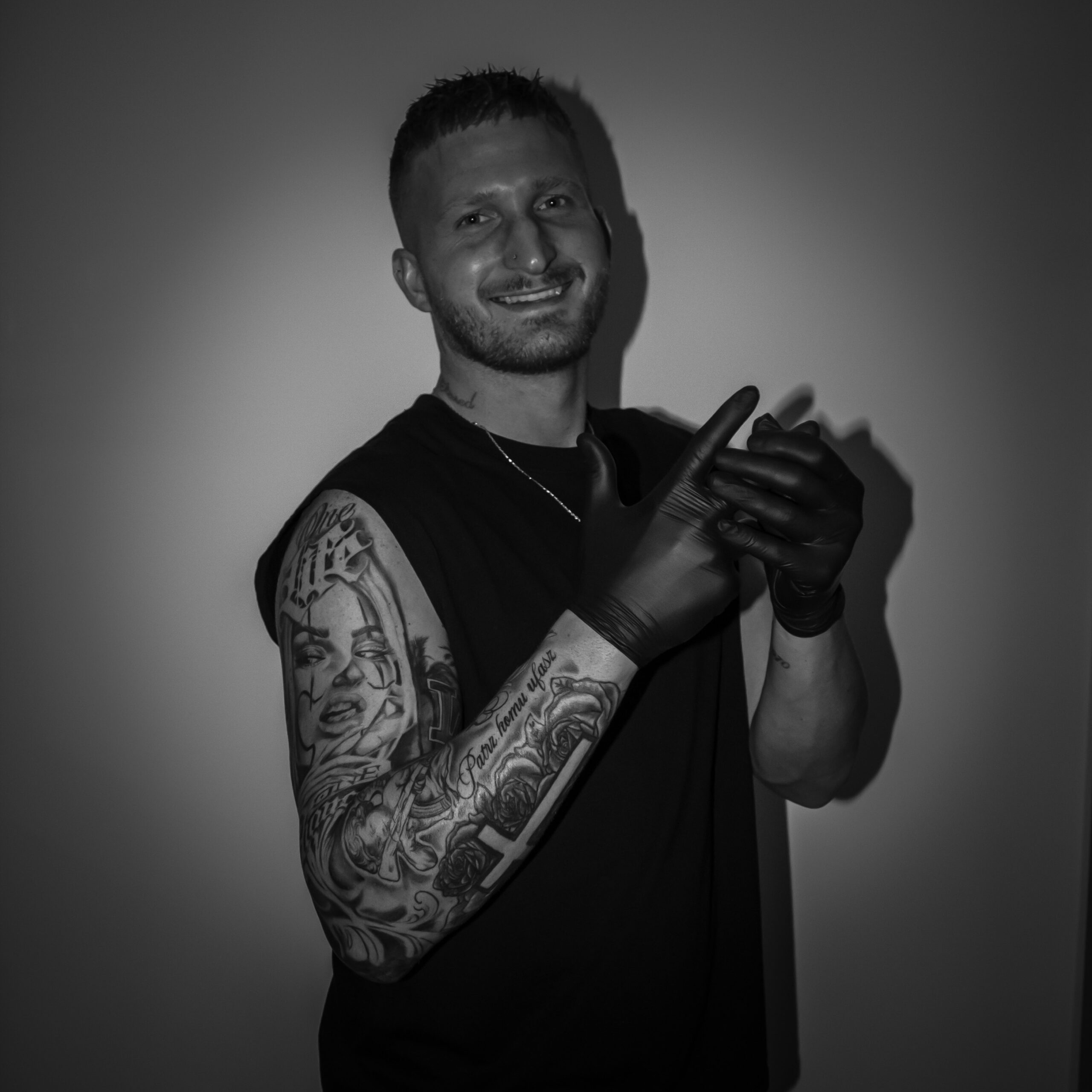 Das Herz hinter den Kulissen: Als Mitinhaber kümmere ich mich um Organisation, Finanzen und den reibungslosen Ablauf im Studio. Auch wenn ich nicht aktiv tätowiere, trage ich selbst Tattoos und lebe die Kunst, die im Studio entsteht.